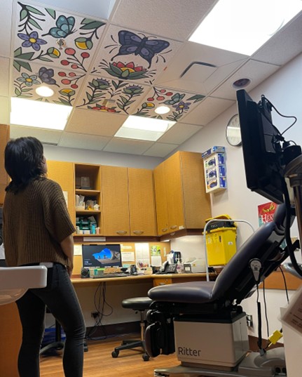 Proulx’s artwork now covers several ceiling tiles in the SA/IPV clinic’s examination suite.